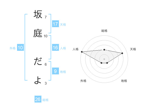 坂庭 だよさんの天格は17画の4点!