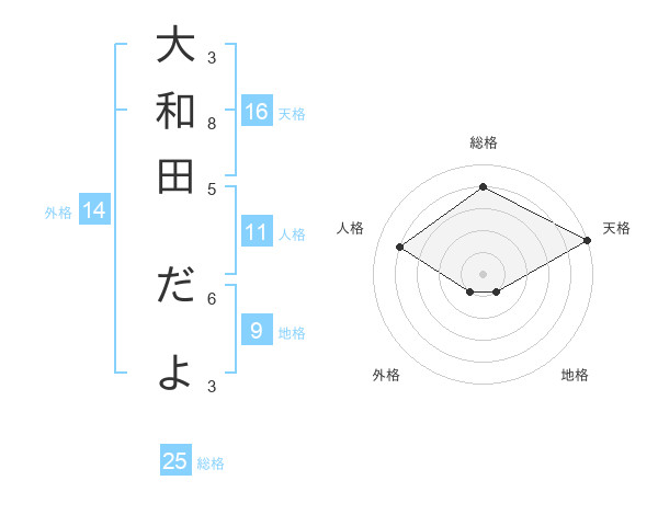 大和田 だよさんの天格は16画の5点!