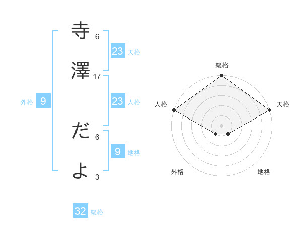 寺澤 だよさんの天格は23画の5点!