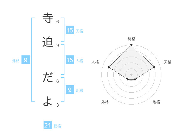 寺迫 だよさんの天格は15画の4点!