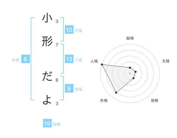 小形 だよさんの総格は19画の1点!