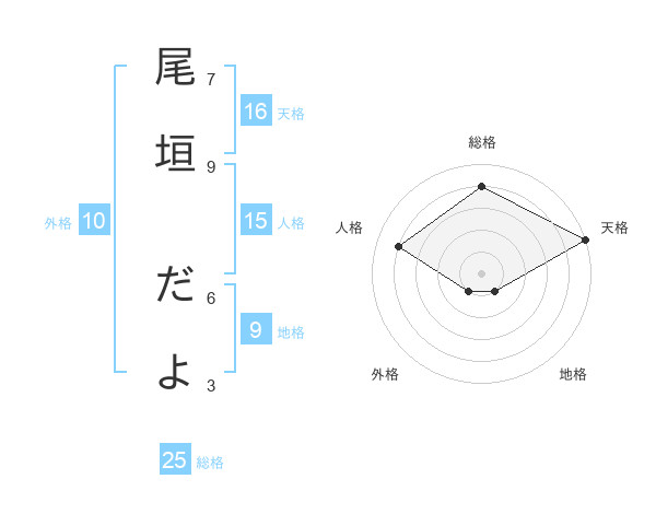 尾垣 だよさんを姓名の画数から五運を鑑定
