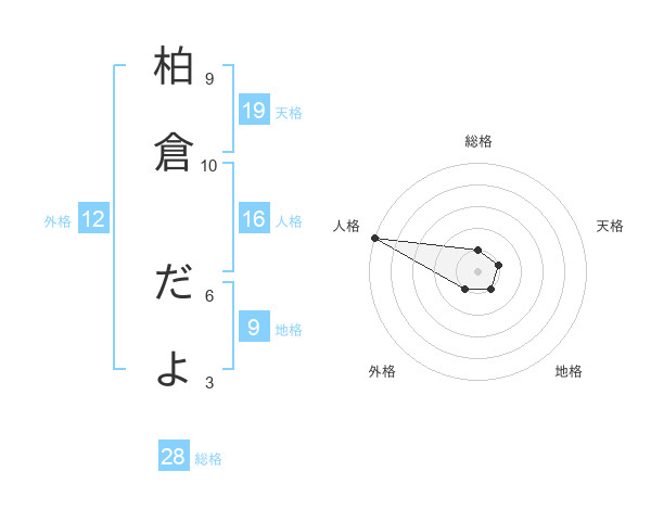 柏倉 だよさんを姓名の画数から五運を鑑定