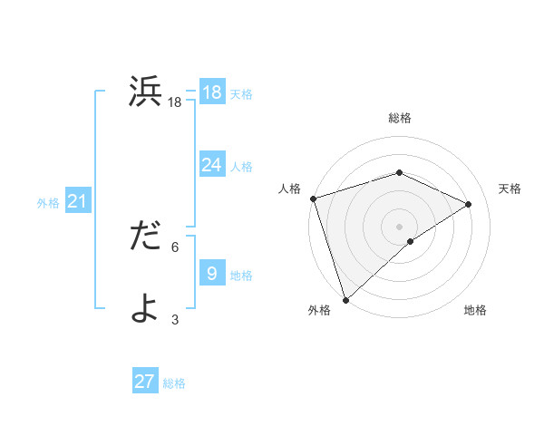 浜 だよさんの総格は27画の3点!