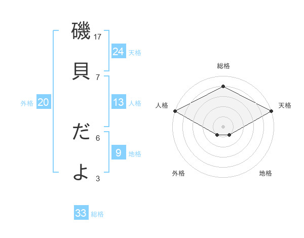 磯貝 だよさんを姓名の画数から五運を鑑定
