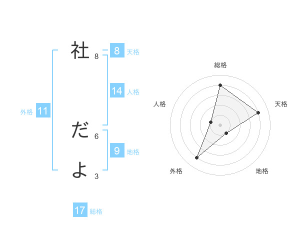 社 だよさんの総格は17画の4点!