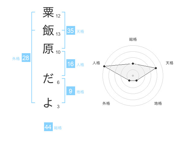粟飯原 だよさんの総格は44画の2点!