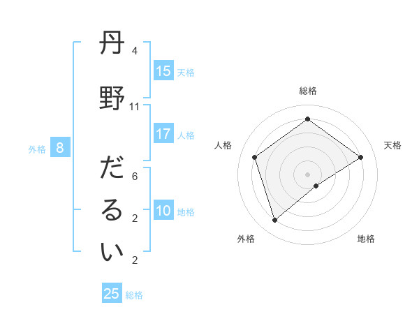 丹野 だるいさんを姓名の画数から五運を鑑定