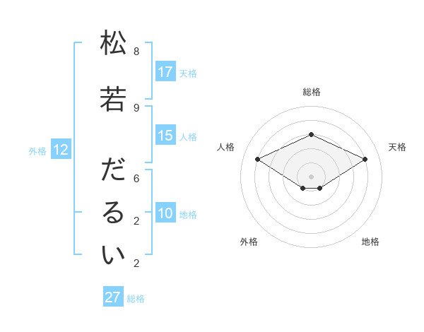 松若 だるいさんの天格は17画の4点!