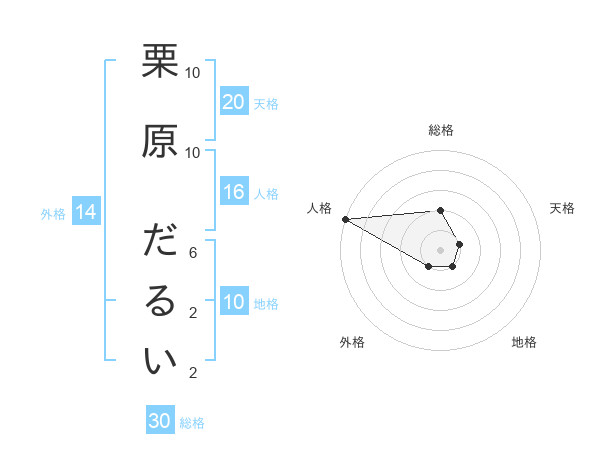 栗原 だるいさんを姓名の画数から五運を鑑定