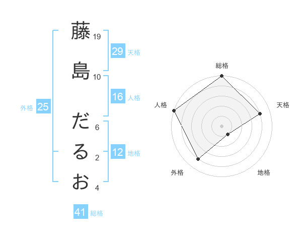 藤島 だるおさんを姓名の画数から五運を鑑定
