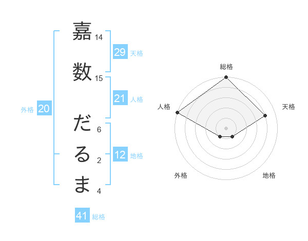 嘉数 だるまさんの天格は29画の4点!