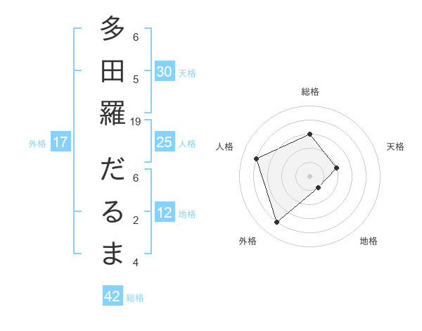 多田羅 だるまさんの総格は42画の3点!