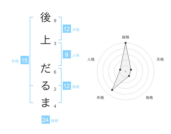 後上 だるまさんの総格は24画の5点!