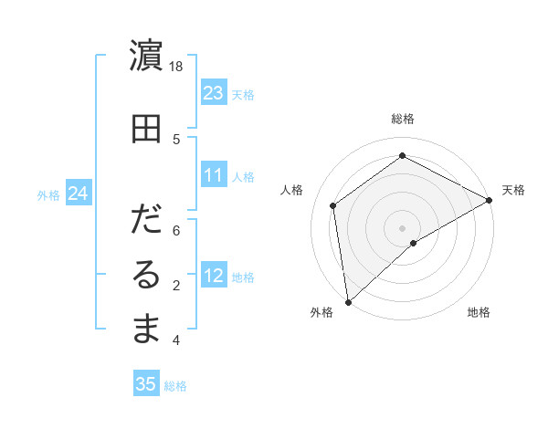 濵田 だるまさんを姓名の画数から五運を鑑定