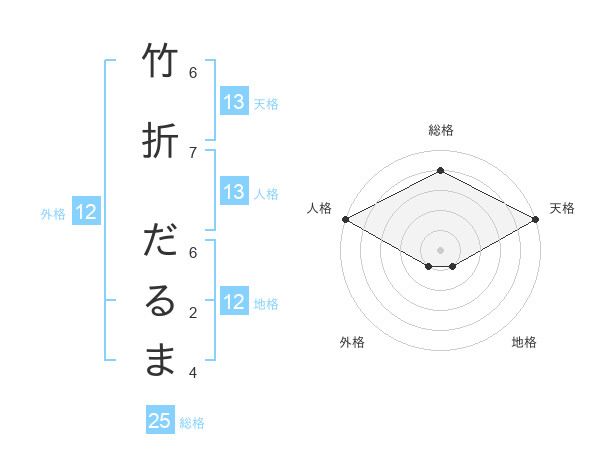 竹折 だるまさんの天格は13画の5点!