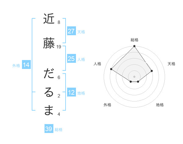 近藤 だるまさんの総格は39画の5点!
