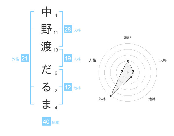 中野渡 だるまさんを姓名の画数から五運を鑑定