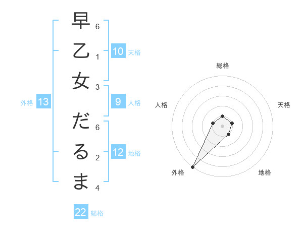 早乙女 だるまさんを姓名の画数から五運を鑑定