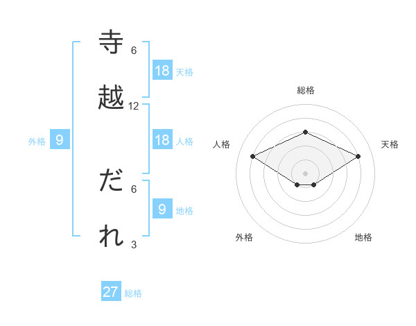 寺越 だれさんの総格は27画の3点!