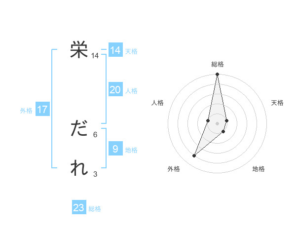 栄 だれさんの総格は23画の5点!