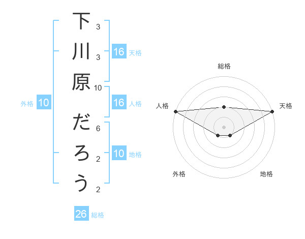 下川原 だろうさんを姓名の画数から五運を鑑定