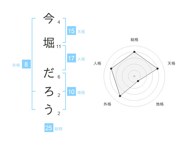 今堀 だろうさんを姓名の画数から五運を鑑定