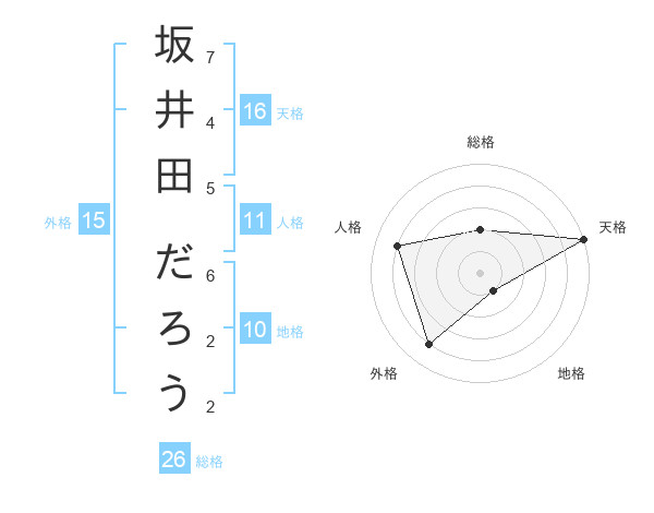 坂井田 だろうさんの天格は16画の5点!