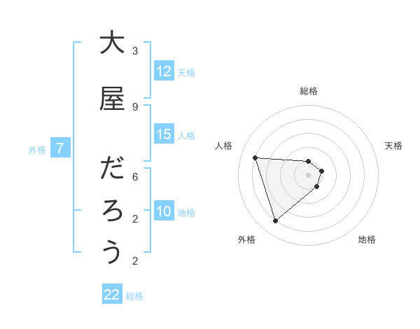 大屋 だろうさんを姓名の画数から五運を鑑定