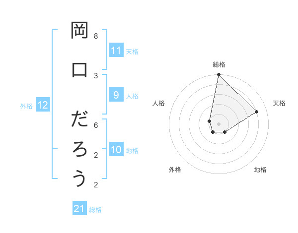 岡口 だろうさんを姓名の画数から五運を鑑定