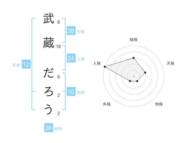 武蔵 だろうさんの総格は36画の3点!