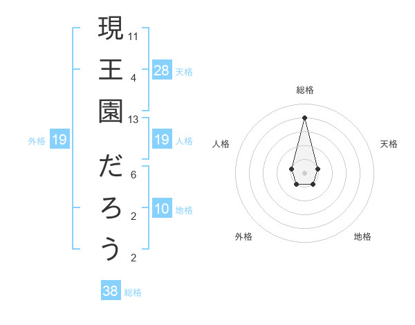 現王園 だろうさんを姓名の画数から五運を鑑定