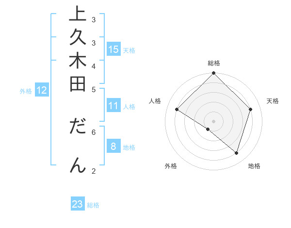 上久木田 だんさんの総格は23画の5点!