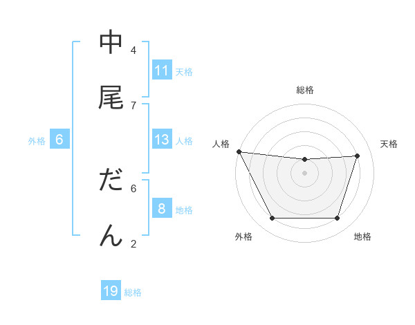 中尾 だんさんの天格は11画の4点!