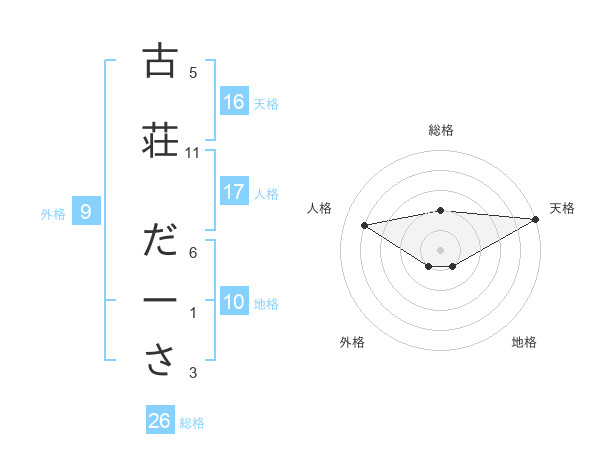 本サイトの鑑定結果の正当性は保証しません。鑑定結果は参考程度にお読みください。実際の名づけにご利用される場合は、姓名判断についてご自身でよくお調べください。