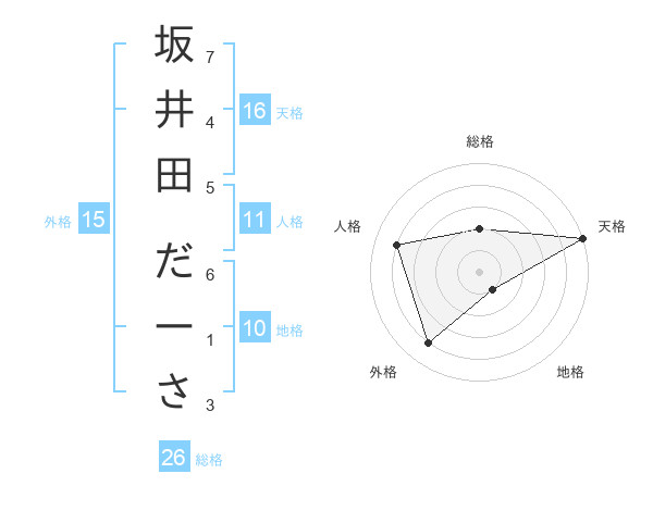 坂井田 だーささんを姓名の画数から五運を鑑定
