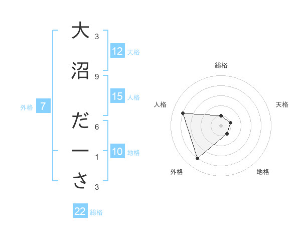 大沼 だーささんの総格は22画の1点