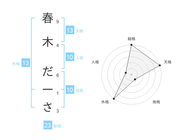 春木 だーささんの天格は13画の5点!