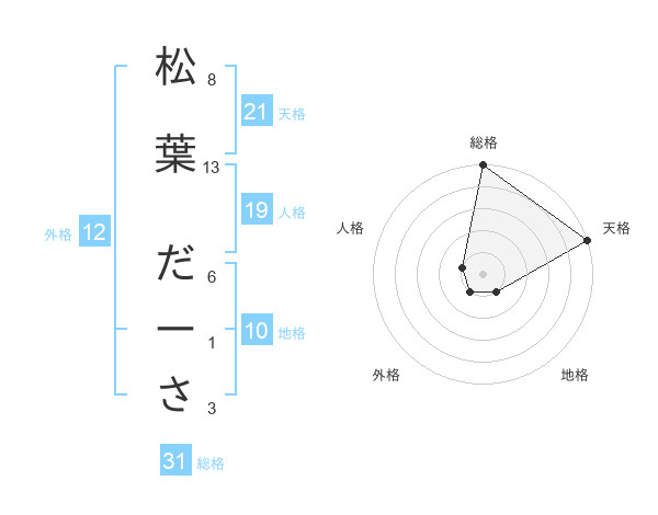 松葉 だーささんの天格は21画の5点!