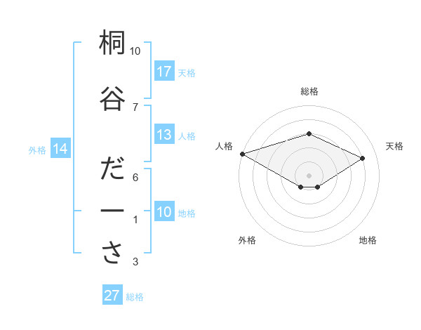 桐谷 だーささんを姓名の画数から五運を鑑定
