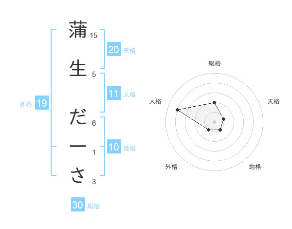 蒲生 だーささんを姓名の画数から五運を鑑定