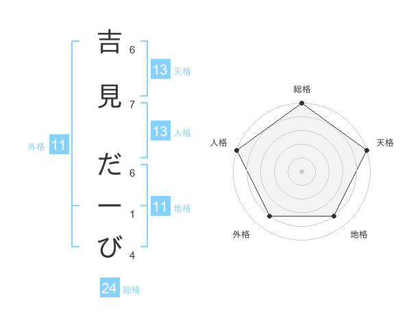 吉見 だーびさんを姓名の画数から五運を鑑定