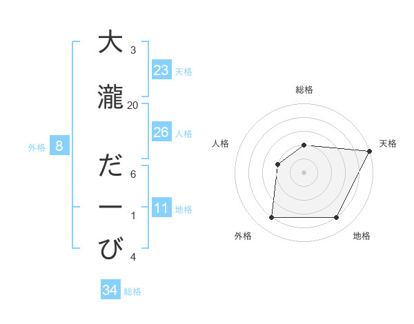 大瀧 だーびさんの天格は23画の5点!