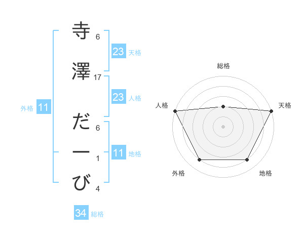 寺澤 だーびさんを姓名の画数から五運を鑑定