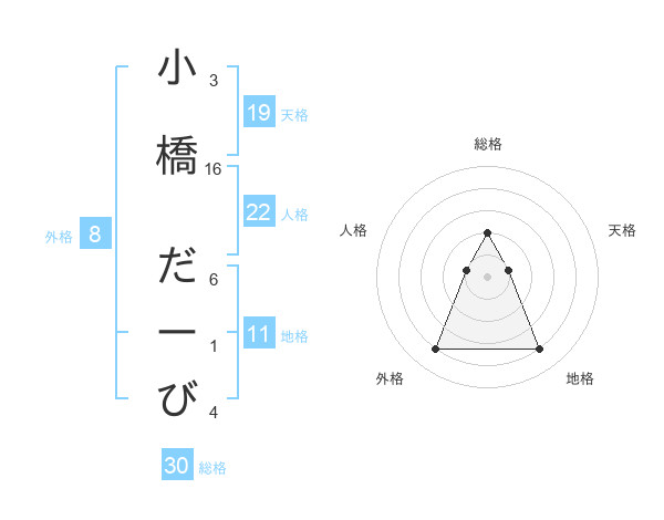 小橋 だーびさんを姓名の画数から五運を鑑定