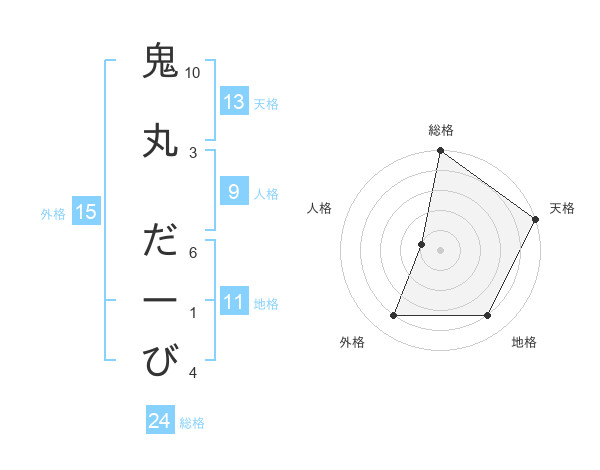 鬼丸 だーびさんを姓名の画数から五運を鑑定