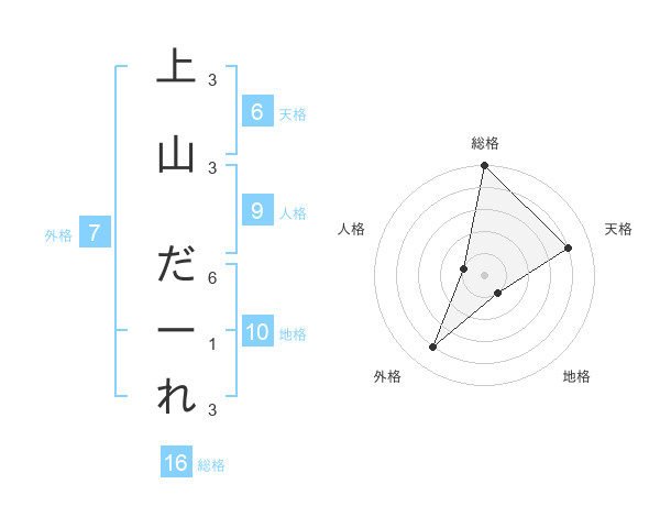 上山 だーれさんの天格は6画の4点!