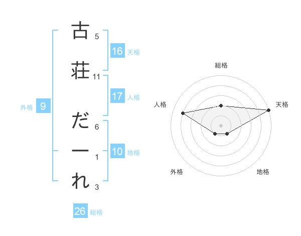 古荘 だーれさんを姓名の画数から五運を鑑定