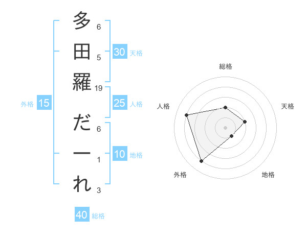 多田羅 だーれさんの外格は15画の4点!