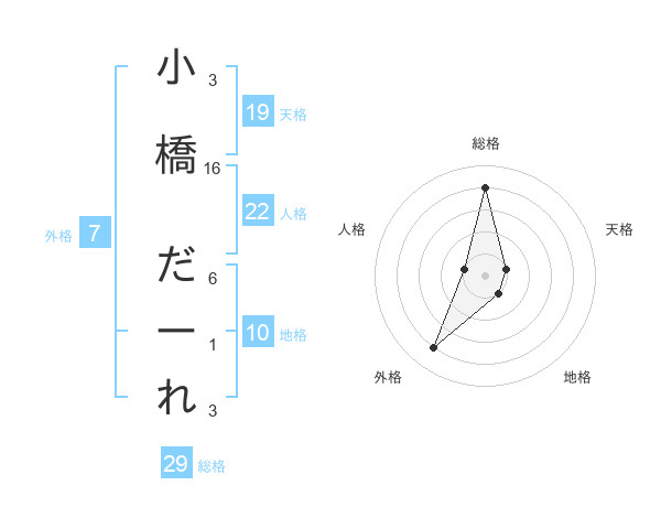 小橋 だーれさんを姓名の画数から五運を鑑定